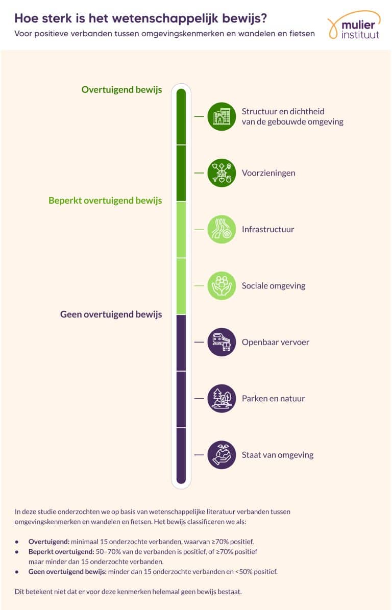 Overtuigend bewijs voor positieve verbanden tussen omgevingskenmerken en wandelen en fietsen
